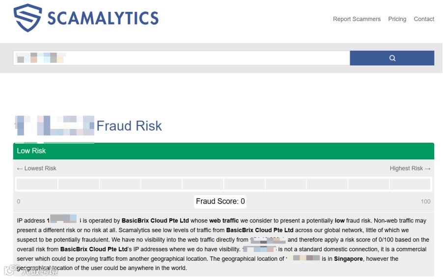 风险评分:<10%,无“数据中心标签”、“黑名单警告”