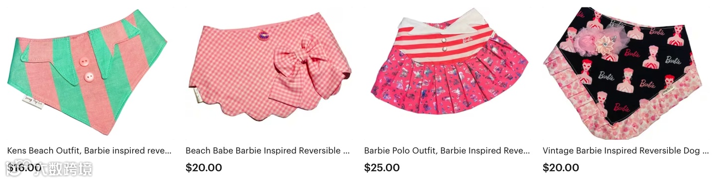 宠物零售商Swag Pup Co在社交媒体上宣传其以芭比和肯为主题的狗狗头巾。店主表示,一套复古黑白小狗服装推出几天就被抢购一空,电商芭比营销的售空速度比常规款快得多,连其他芭比款的加购人数也比常规款要多。