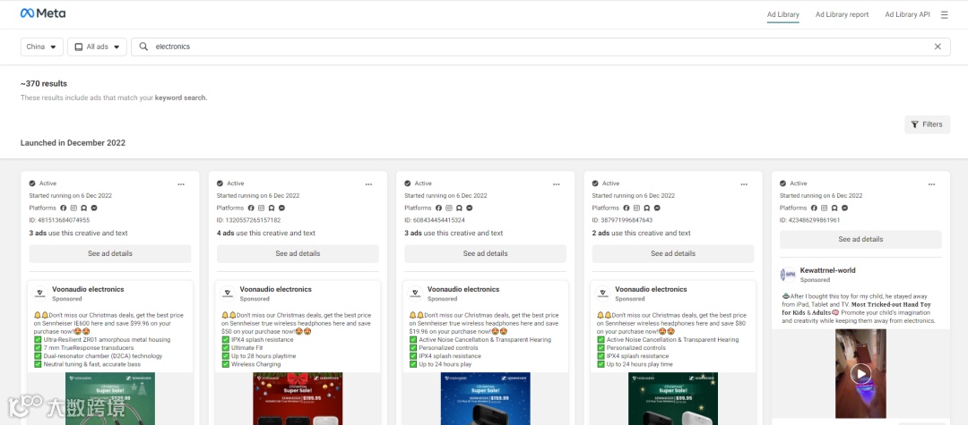 3)各大社交媒体平台的Ad Library,如Facebook Ad Library: