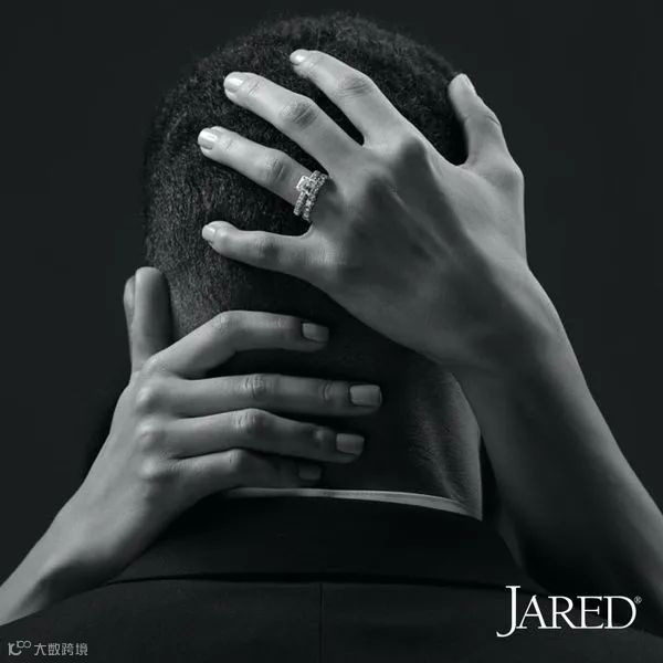 Jared的戒指广告,利用黑白创意拍摄使观众的注意力和注意力更多地集中在产品的本质和细节上。