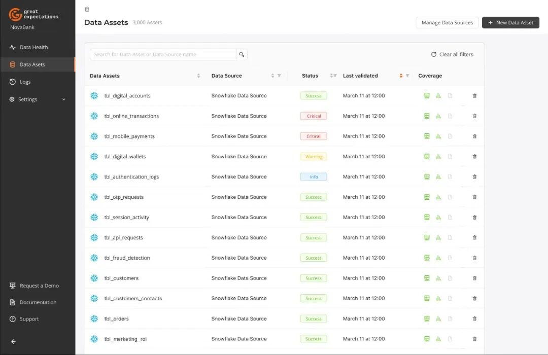 “Great Expectations”[链接1](常简称为 GX)是一个针对数据质量、数据断言与数据文档化的平台。在这个平台里,数据团队可以用一种可表达、可测试、自动化方式对每一个数据集、每一个数据管道设定质量期望(Expectation)[注释1],并在管道运行时自动评估、记录、报警、文档化,从而让数据质量管控成为一种“即服务化(as-a-Service)” [注释2]的实践。