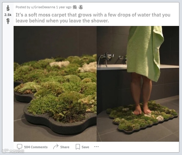 It's a soft moss carpet that grows with a few drops of water that you leave behind when you leave the shower.