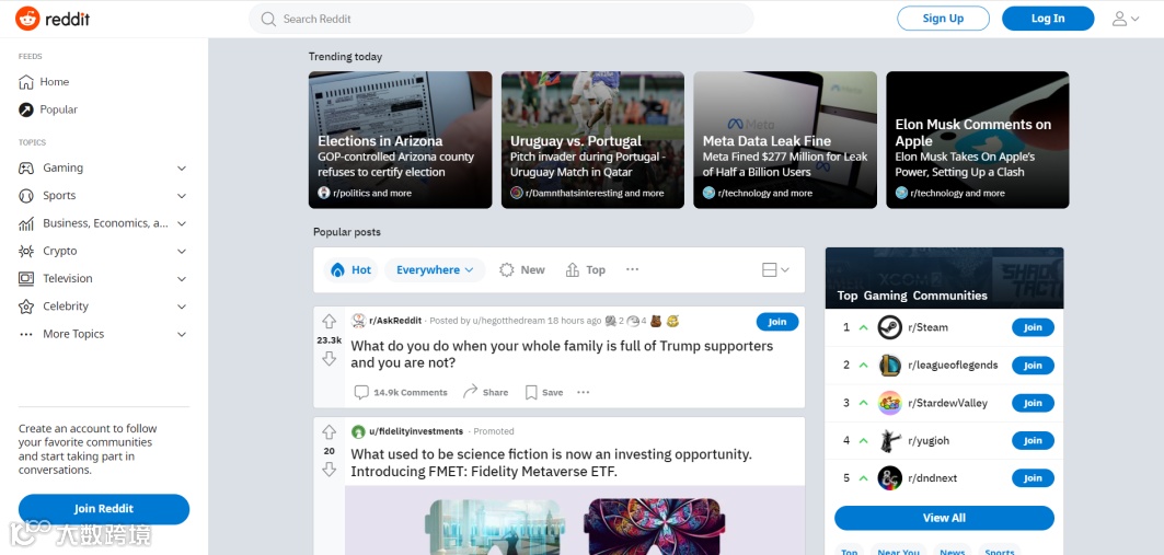 从首页到帖子详情页,Reddit都一直再给用户推荐社区,不管是你附近的社区还是你感兴趣的帖子所归属的社区,可以说整个Reddit就是围绕社区在运行。