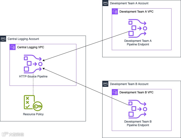 - 核心机制:用户现在可以通过配置资源策略(resource policies)来实现跨账户授权。主账户(如中央日志记录账户)创建 Ingestion 管道后,可授权其他指定账户创建该管道的端点,从而向其发送数据。