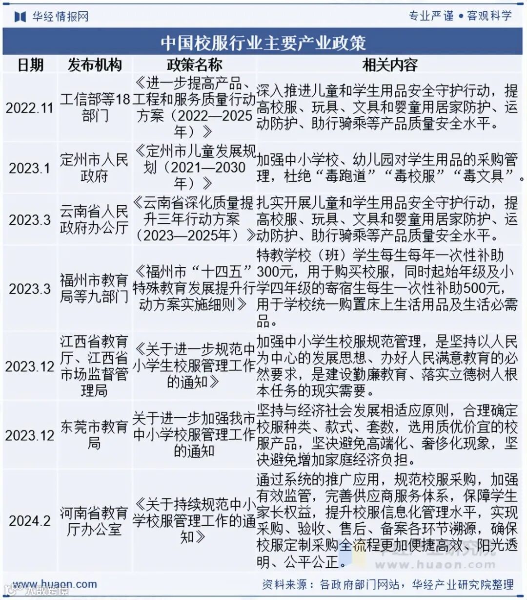 相关报告:华经产业研究院发布的《2025-2031年中国校服行业市场全景分析及投资战略规划报告》