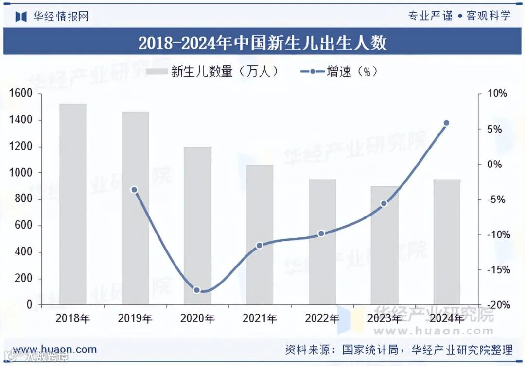 尽管在2016年、2021年我国先后全面放开二胎和三胎生育政策,但我国每年新生儿出生人数仍急剧走低,2024年我国出生人口为954万人,比2023年增加52万人,自2017年以来首次回升,主要受近几年生育意愿累积、各地生育支持政策逐渐落实以及龙年生肖偏好等因素影响,但也要看到育龄妇女特别是生育旺盛期育龄妇女仍在减少,对我国下阶段出生人口依然存在影响。