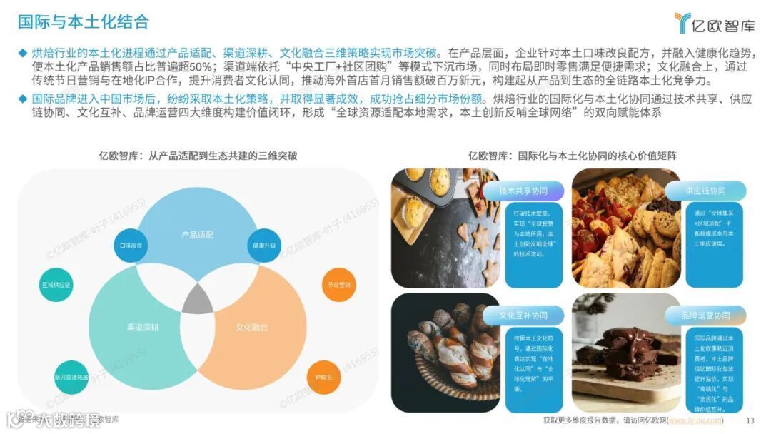 线上依赖抖音、小红书(KOL 营销,2022 年相关销售额增长 300%)、拼多多(“拼团” 模式,2023 年烘焙品类增速 50%);线下依托社区店、商超、茶饮店场景,“线上引流 + 线下体验” 成主流。 - 国际与本土结合:“中西融合” 成产品创新方向