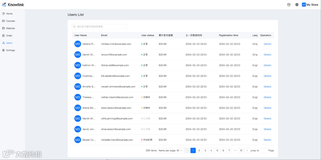 支持切换管理台语言,满足商家的海外员工/老师顺畅操作管理台的需求,示例图如下: