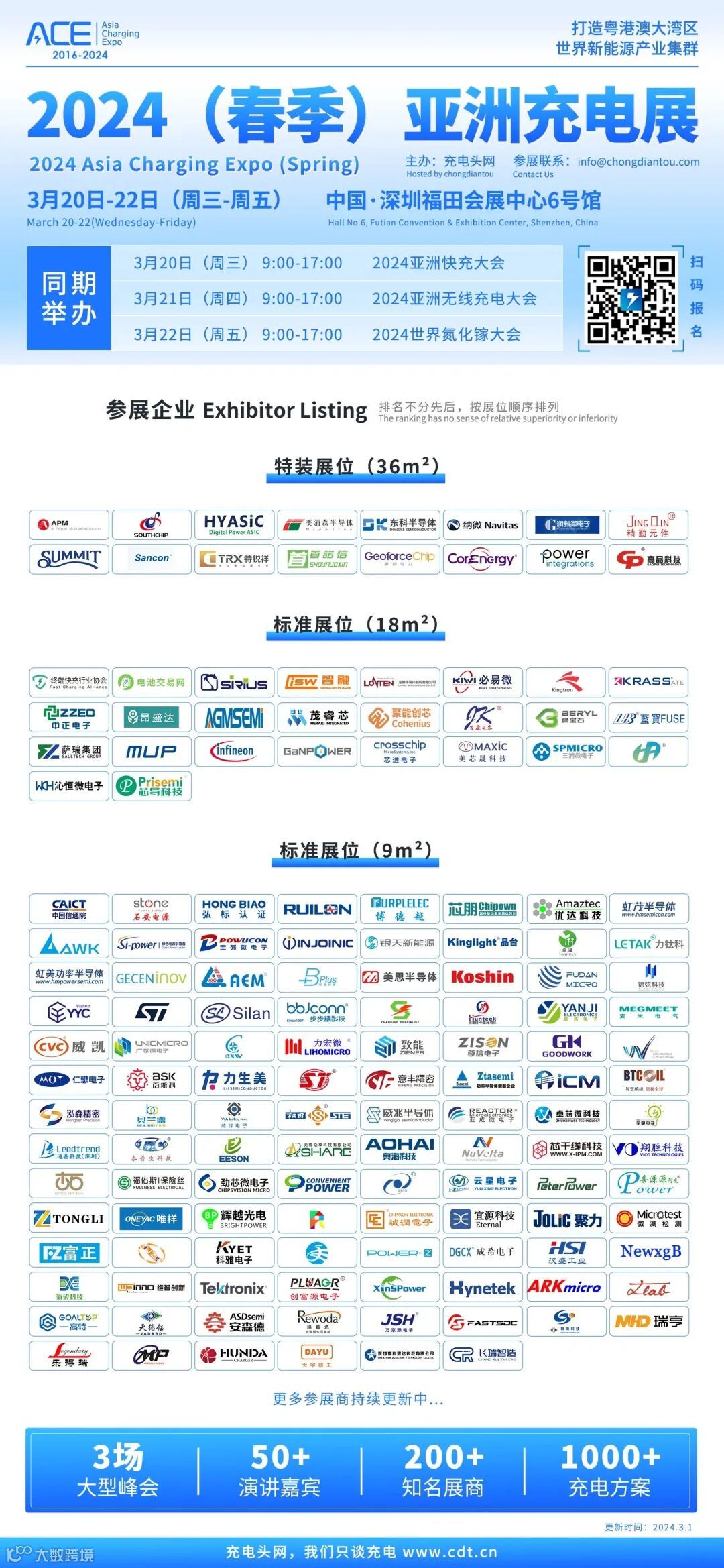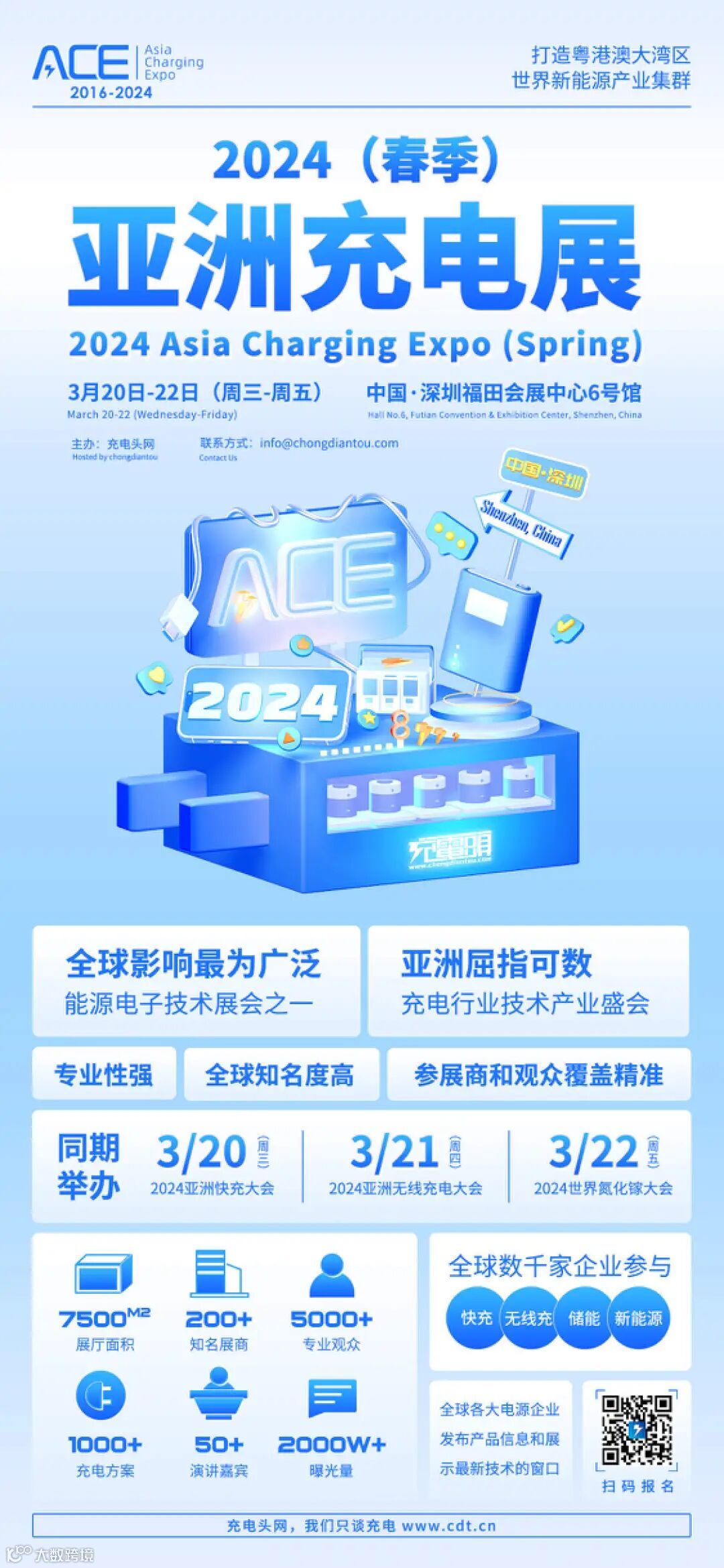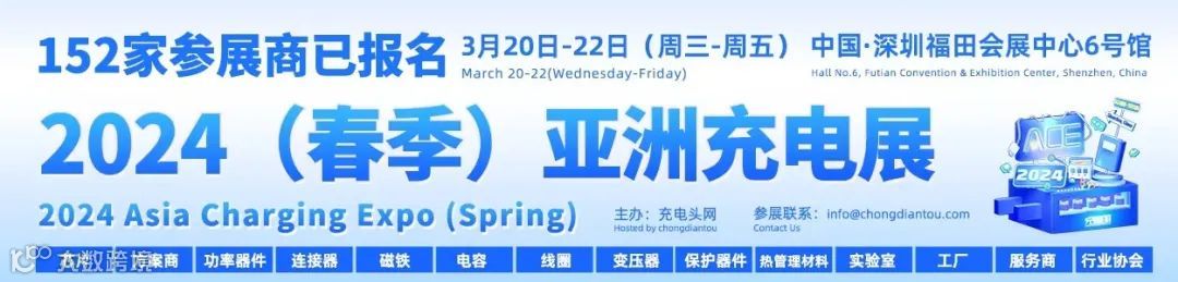2024(春季)亚洲充电展将于3月20日-22日在深圳福田会展中心6号馆举办,将邀请到文章中出现的企业进行展示、分享,届时欢迎莅临展台交流。目前还有大量展位招商中,如需演讲、参展,欢迎通过以下方式联系充电头网报名。