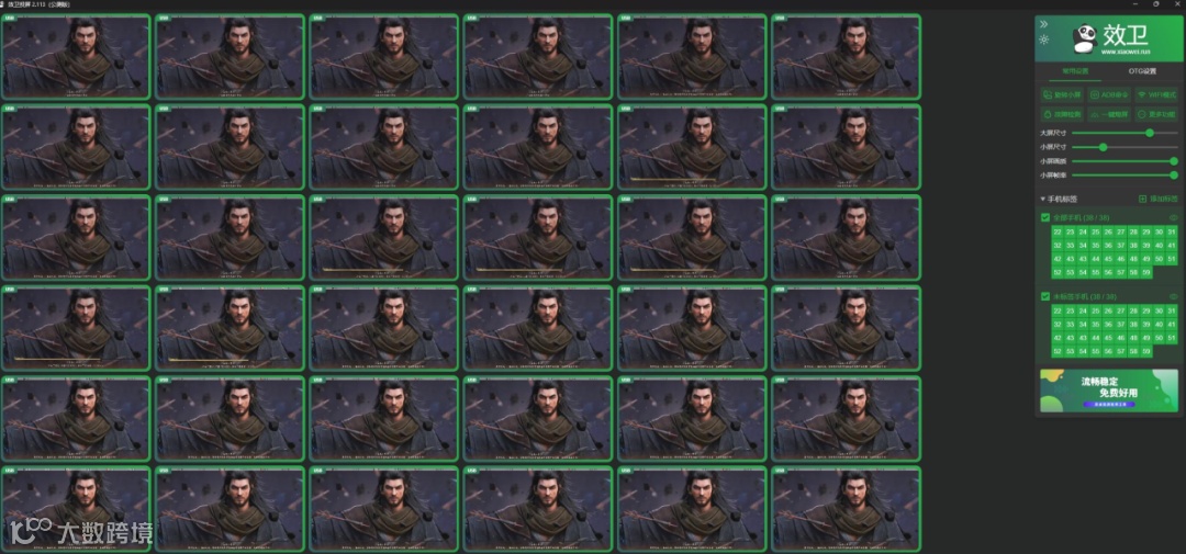 赤兔群控:纯C++开发内核搭配GPU渲染技术,1080P投屏延迟稳定在30ms以内,OTG模式可扩展至500+台设备管理