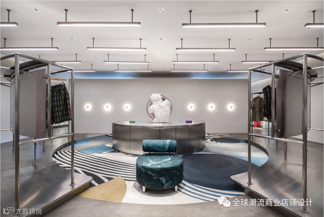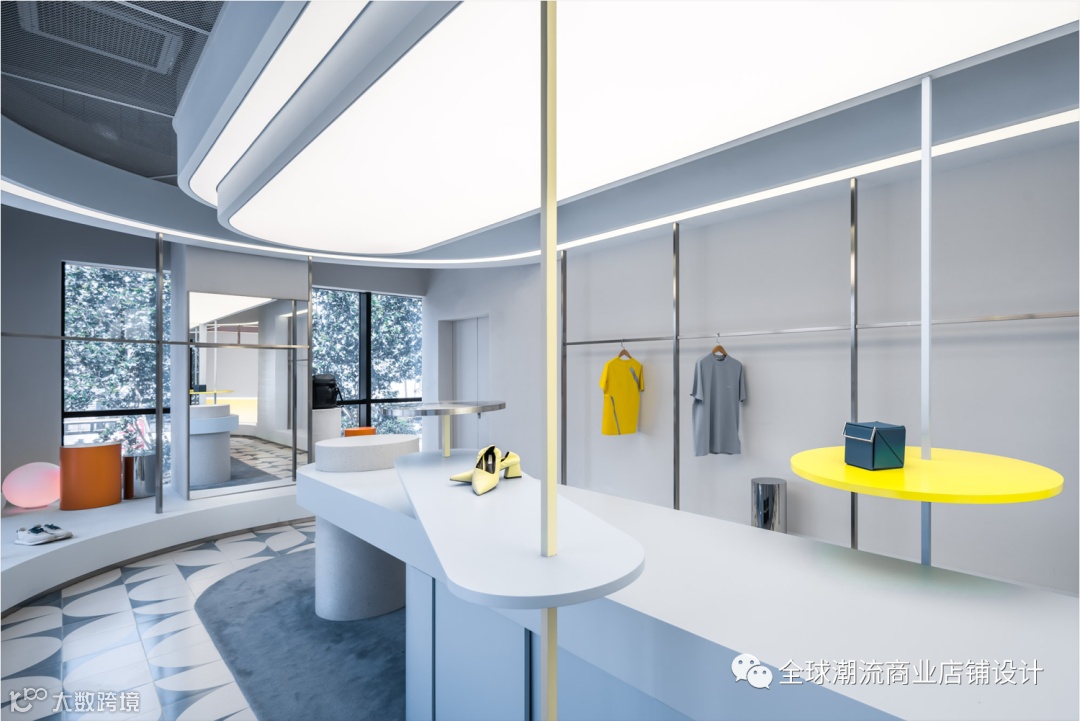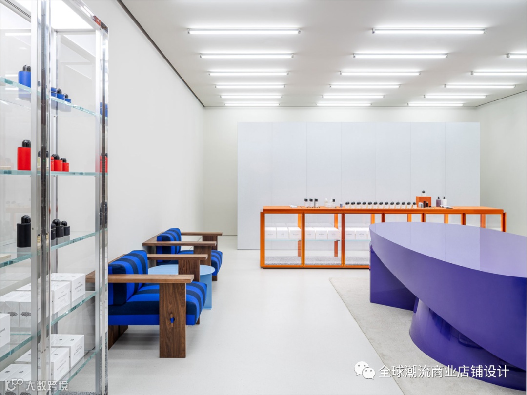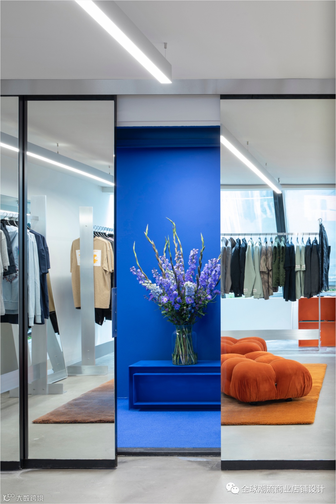 品牌色克莱因蓝作为空间点缀,点亮空间的同时也有效的提高了客人的进店率,并使其对品牌留下深刻印象。