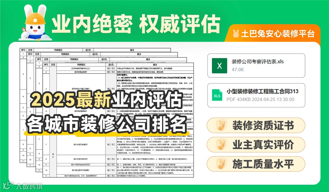 看不懂施工工艺,不知如何验收材料,可以用下方的装修公司神器,免费用,挑选3-5家当地排名靠前的装修公司,免费送3-8次验收、验收不合格不付款,加微还可以免费领取装修全流程资料包和超全避坑指南:(会有专人为您指导,留意微信或电话)