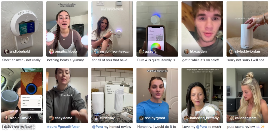 在TikTok上,Pura则“接地气”一点,通过用户测评,开箱体验等多种形式,结合日常生活场景去拍摄短视频,生动形象地展示产品的用途,匹配年轻一代用户的内容偏好,实现种草转化。