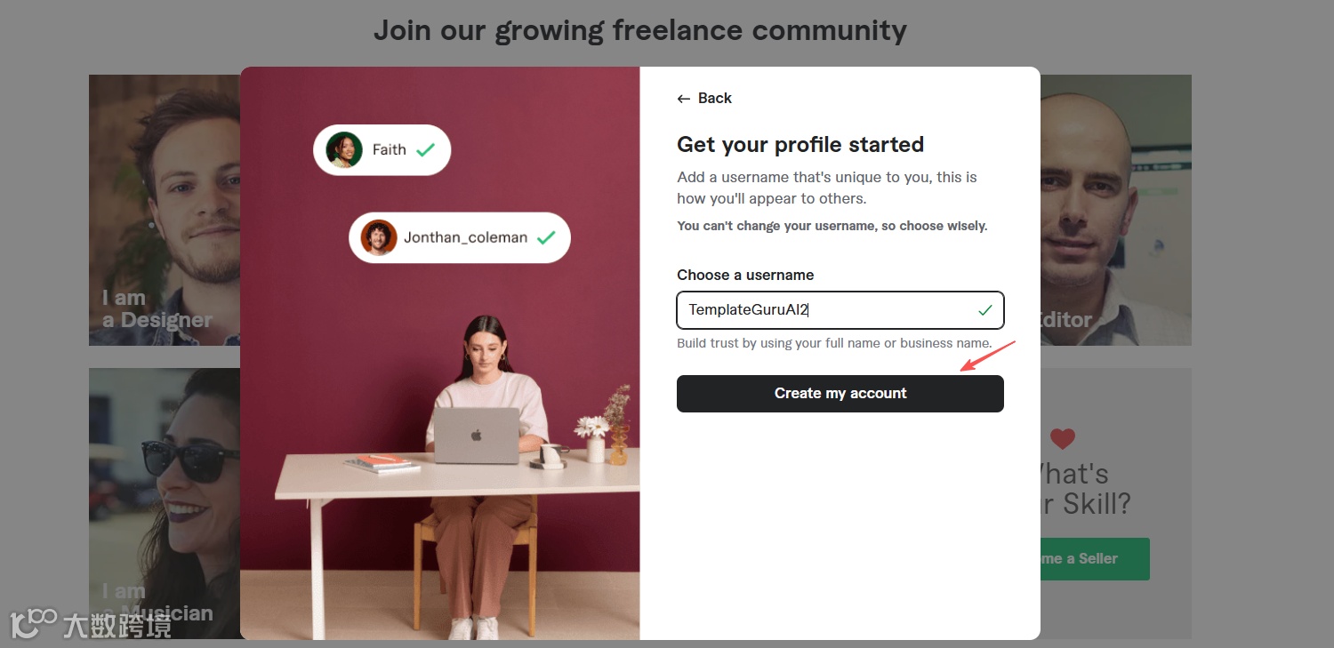 起个用户名,可以跟你售卖的商品强相关,如【TemplateGuruAI2】
