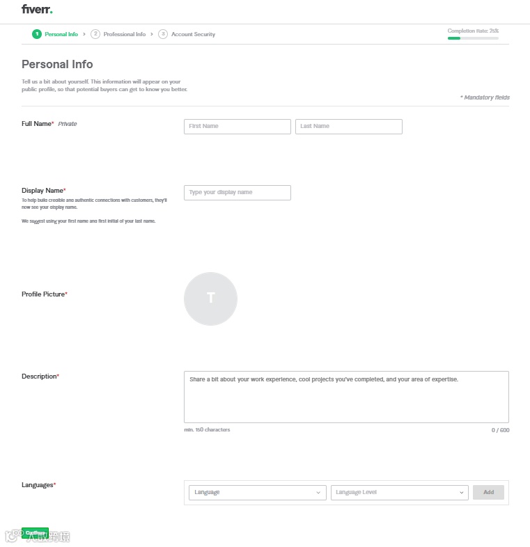 在完善个人资料这里很重要,买家会认真看你的资料看是否匹配完成任务的能力。按照要求认真填写即可,在简介那部分可以套公式:“用 [工具] 提供 [服务],帮你 [解决痛点],已服务 [数量] 客户”。