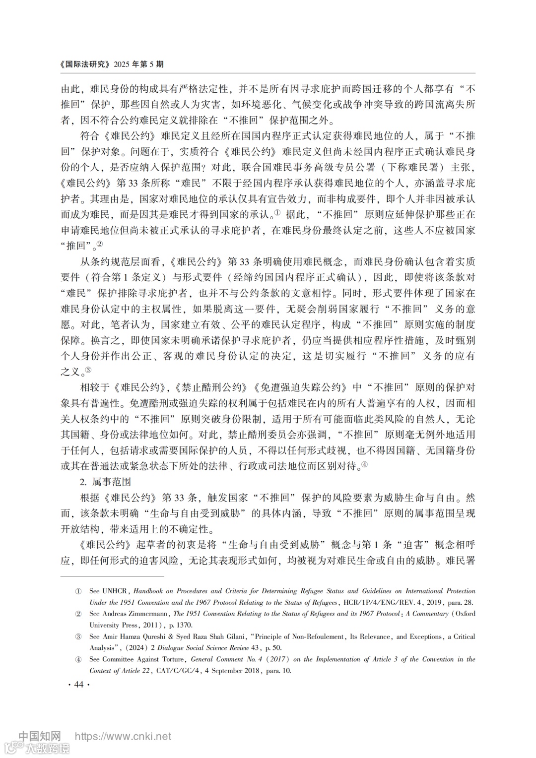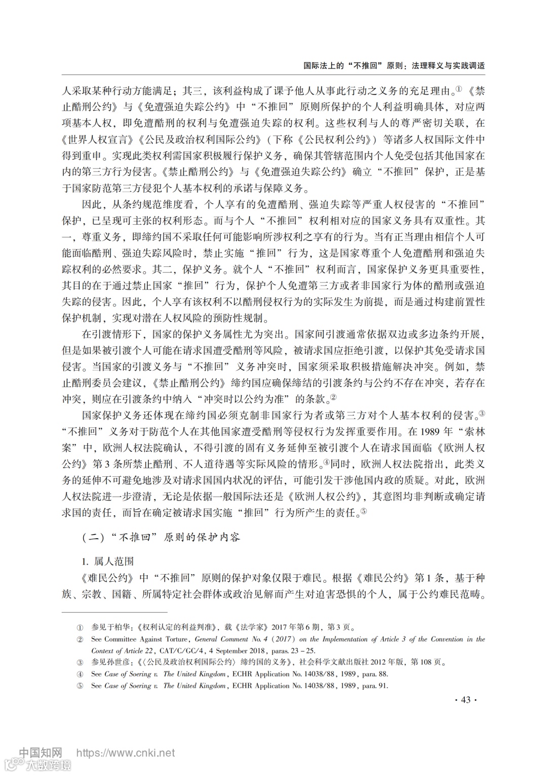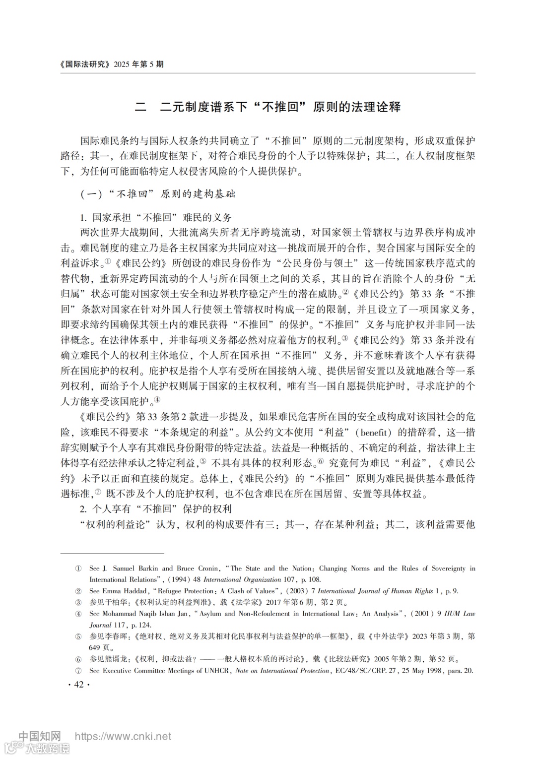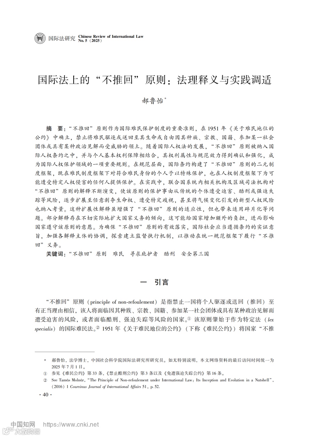 来源:郝鲁怡:《国际法上的“不推回”原则:法理释义与实践调适》,《国际法研究》2025年第5期。