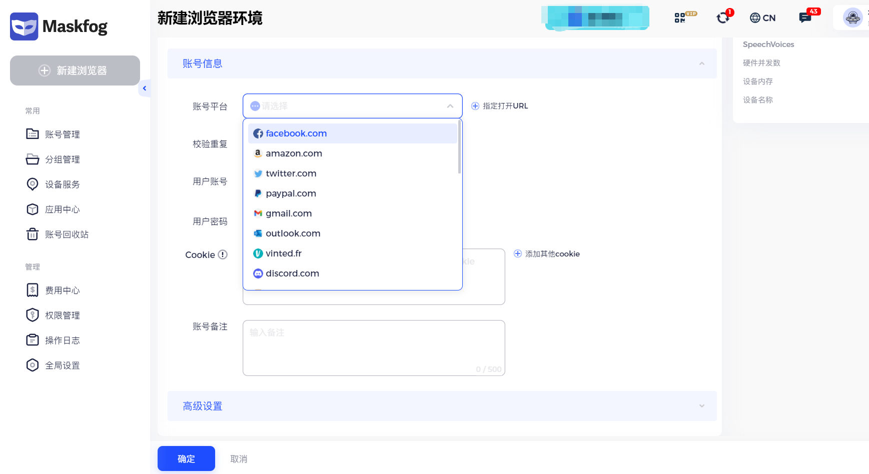 Maskfog 指纹浏览器能帮你为每个账号创建独立、可控的浏览器环境:独立 Cookie 存储、可定制指纹参数、与代理配合使用时可显著降低账号间指纹相似度。