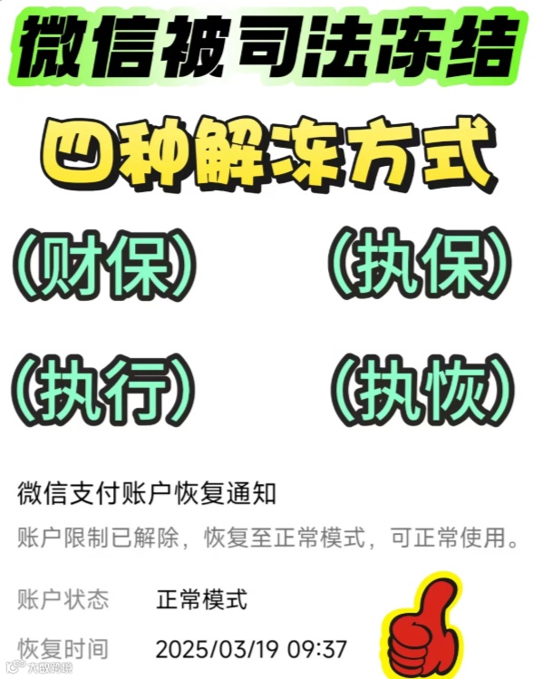拿到法院的解冻文书,再交给微信支付客服,平台就会执行解冻。