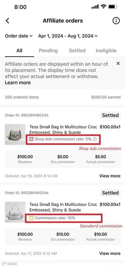 如果商家8月1日0点在存量订单里,设置了广告佣金。那么8月1日0点之前的订单,还是按照标准佣金来计算,但是从设置广告佣金开始之后的订单,就按照归因来看了,如果订单归因到广告流量的话,就按照广告佣金结算
