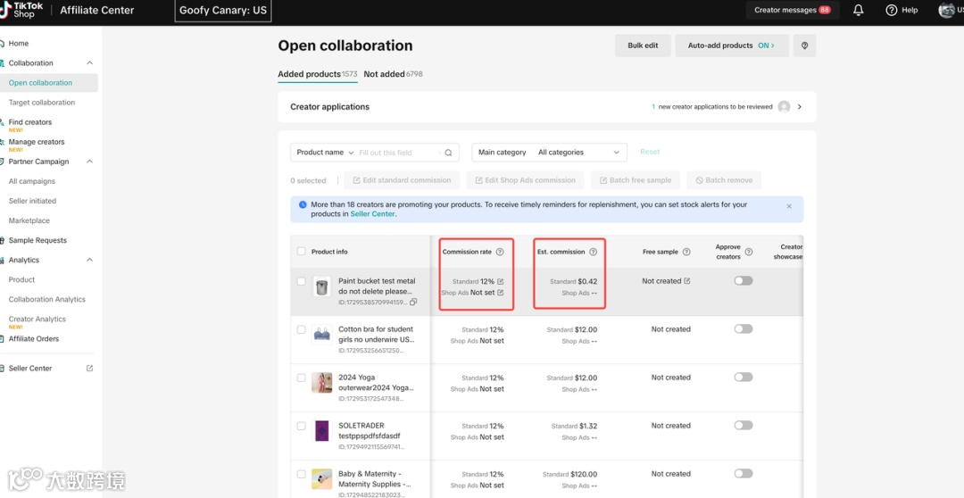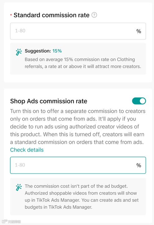 后续升级:允许卖家为支持同一联盟达人的广告流量订单及自然流量订单设置不同的佣金率。