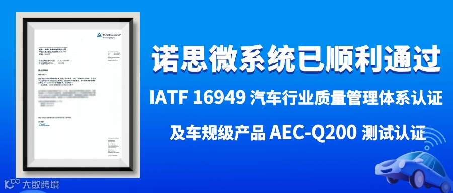 今年,诺思已顺利通过 IATF 16949:2016 汽车行业质量管理体系认证及车规产品 AEC-Q200 测试认证。