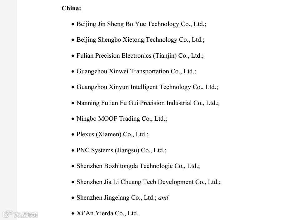 4、美国商务部新增13家中国公司进入“未经验证清单”