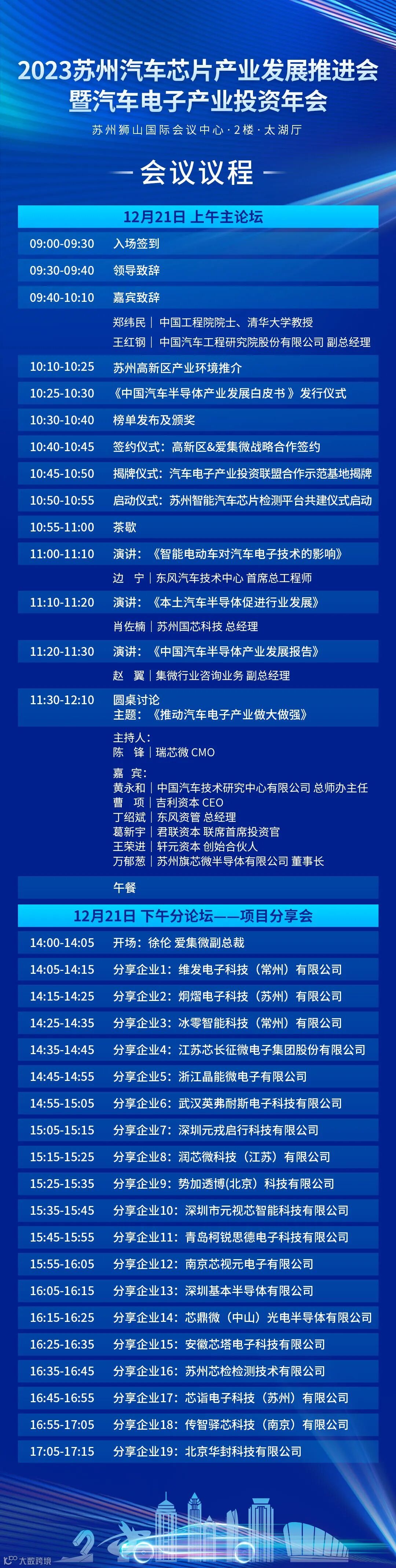 1、汽车电子产业投资年会全议程揭晓,21日苏州见!