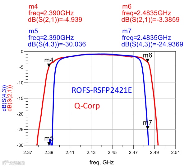 RSFP2421E是一款针对WiFi2.4G CH1-CH11开发的滤波芯片。该款产品边带极为陡峭,近带抑制高( 在2380-2390MHz处抑制为30dB Typ ; 在2483.5-2500MHz处抑制为 25dB Typ);插损极小(1.2dB int@Typ);高耐受功率(+29dBm,+55℃,5000hrs)。该款产品对产品设计开发难度及工艺一致性要求极高,对比友商开发产品有效解决SRRC新规的最新要求!