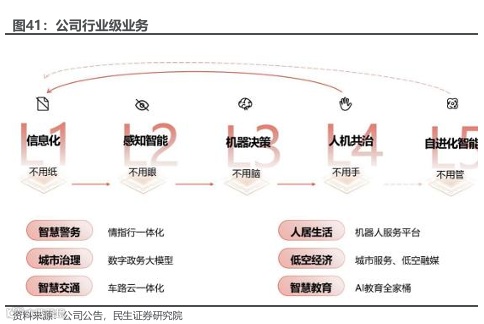 行业级业务,凭借软硬件通用平台,在六大行业开展智慧行业解决方案。公司行业级业务,面向政府机构等终端客户、企事业单位等集成商客户,基于自研的算法软件、芯片等核心产品,搭配外购的定制化或标准化硬件产品,按需求交付硬件产品或解决方案。公司所涉及的细分行业为六类,分别为智慧警务、城市治理、智慧交通、人居生活、低空经济、智慧教育。业务规划:未来续优化现有城市治理、公共安全、 商业园区、智慧交通等成熟领域解决方案的同时,积极布局智慧教育、低空经济等新兴领域,实现应用场景延展。