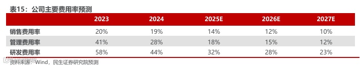 主要费用率:1)销售费用率:随着公司营收规模扩张叠加公司企业级、消费级、行业级三方向业务销售渠道建设稳定,销售团队已组件完毕,后期公司销售费用率有望合理收敛,预计2025-2027年销售费用率分别为14%、12%、10%;2)管理费用率:公司前期管理费用率较高涉及上市费用及股权激励费用,未来营收规模扩张及无相关费用影响,管理费用率有望合理收敛,预计2025-2027年管理费用率分别为18%、15%、12%。3)研发费用率:公司作为AI芯片和算法企业,研发投入需求较大。营收规模虽大幅增长,但公司全力转向推理市场,大量研发费用投入AI推理芯片研发,公司研发费用或呈现缓步下降,仍维持较高水平。预计2025-2027年研发费用率分别为32%、28%、23%。