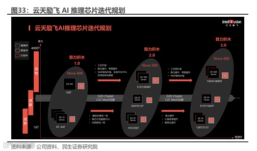 算力积木结构支撑,设计大算力推理芯片迎接推理市场扩容。公司目前在销产品为算力积木1.0架构支撑下的边缘和云的大算力推理芯片。在研即将发布的下一代产品为算力积木2.0架构支撑,从边缘到具身智能到云端的大算力推理芯片。算力积木2.0融合了三项架构创新,Nova500最新神经网络处理器指令微架构,可适配各种模型,提供高性价比解决方案;国产工艺的Chiplet;引入3D memory堆叠来替代对于HBM的需求,从而更好对应在推理场景下的各类需求。同时,公司计划未来升级算力积木体系至3.0,对应Nova600,从而支撑更大规模云端集群类推理。