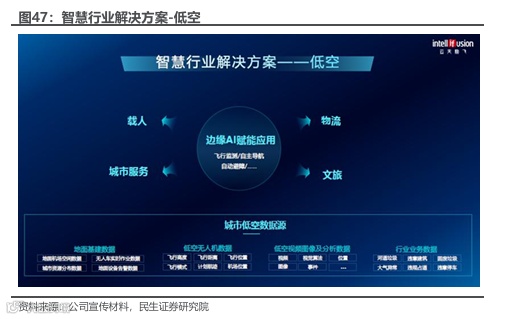 低空经济,赋能百业,带来产业的转型、融合。公司边缘AI赋能应用,实现飞行监测、自主导航、自动避障,为低空下的物流、文旅、载人、城市服务赋能。通过低空行业布局,公司收集采取城市低空数据源,包含地面基建数据、低空无人机数据、低空视频图像及分析数据、行业业务数据,进一步完善AI产业与应用场景结合。