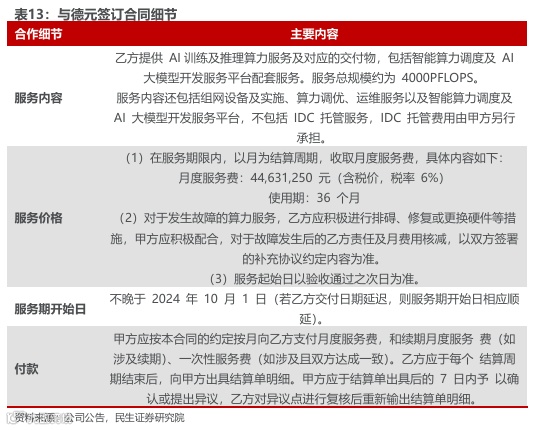 与德元签订合同项目,大额订单补充现金流。2024年,公司与德元方惠就德元向公司购买 AI训练及推理算力服务达成框架安排。在正式提供服务后三年内,公司预计将获取金额约为人民币16.07亿元的AI算力服务收入。公司全资子公司励飞科技与德元方惠于2024年7月初签署合作正式合同,目前处于合同履约中,将对公司经营业绩产生积极影响。