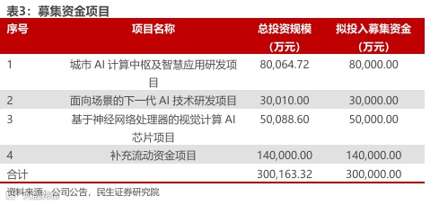 公司于2023年募集资金上市,充足现金补充支撑公司穿越创业研发投入期。公司在2023年4月4日于科创板上市,公司拟投入募集资金30亿元,实际募资38.99亿元,扣除发行费后,募集资金净额为35.84亿元。公司募集的资金分别用于城市AI计算中枢及智慧应用研发项目、面向场景的下一代AI技术研发项目、基于神经网络处理器的视觉计算AI芯片项目、补充流动资金项目。由于AI行业处于发展前期,研发仍需大量投入,资金充足有助于公司穿越研发投入期。