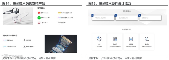 公司硬件设计有以下优势:1)PCB设计能力,优化底噪能力;2)射频、天线链路设计能力;抗静电设计能力;3)抗静电设计能力。软件定制化有以下优势:1)OTA,自研加密算法;2)智能交互,实现耳机与手机端的智能交互;3)主动降噪,独有的降噪算法经验补强;4)霍尔回连,独有的机制实现超低功耗。