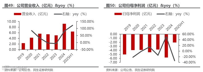 营业收入增速恢复高速增长。2019-2024年,公司营业收入从2.30亿元增长至9.18亿元,CAGR达31.89%。其中2022、2023年营收出现下滑,2022年主要系部分项目推进落地不及预期,叠加业务受公共卫生事件影响;2023年主要系数字城市业务收入下降所致。公司2024年收入为9.18亿元,同比增长81.42%,营业收入恢复快速增长态势,主要系企业级及消费级的销售收入增加所致。未来公司凭借算法+芯片技术拓展消费级与企业级业务增长,营业收入有望维持高速增长。公司2025年H1营收为6.46亿元,同比+123.10%;半年度高速增长系企业级业务与消费级业务兑现。
