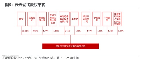 公司股权架构稳定。截至2025年中报,公司董事长兼总经理陈宁博士直接持有公司23.56%的股权,并通过珠海明德致远投资有限公司间接持有公司1.71%的股份,合计持有公司25.27%的股权,是公司第一大股东以及实际控制人。公司前十大股东中,珠海云天创享一号、珠海云天创享二号系公司员工持股平台;持股8.01%的第二大股东是由深圳市特区建设发展集团有限公司控股的东海云天;持股1.97%的第三大股东是公司持股平台珠海创享一号。
