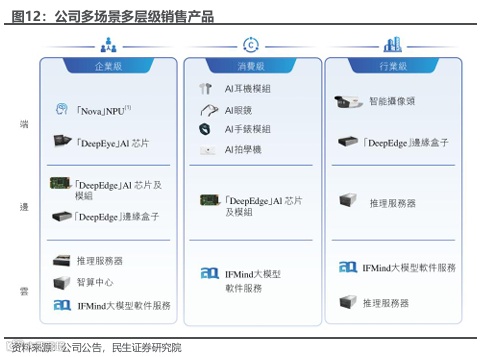 公司凭借底层软硬件技术优势,根据部署地点和算力范围不同,在端、边、云三个层级,企业级、消费级、行业级三个应用场景,进行相关硬件与软件产品销售。