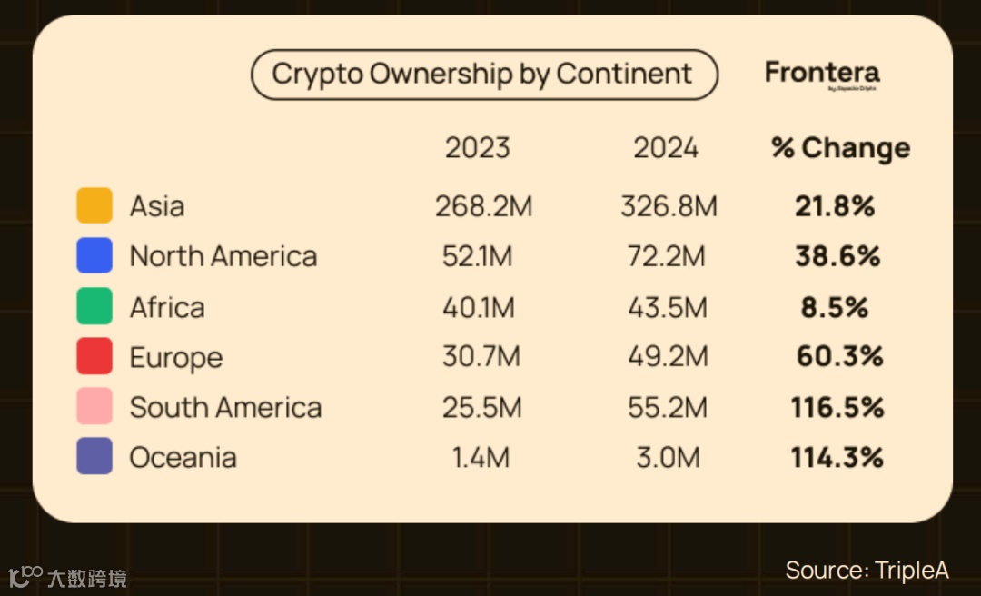 过去 15 年,加密货币从自由主义极客的小众玩具,演变为全球金融版图的关键组成,彻底改变了我们对货币与价值的认知与使用方式。TripleA 数据显示,全球持有虚拟资产的人口已增至 5.62 亿 (2023 年为 4.2 亿),占世界总人口的 6.8% 。