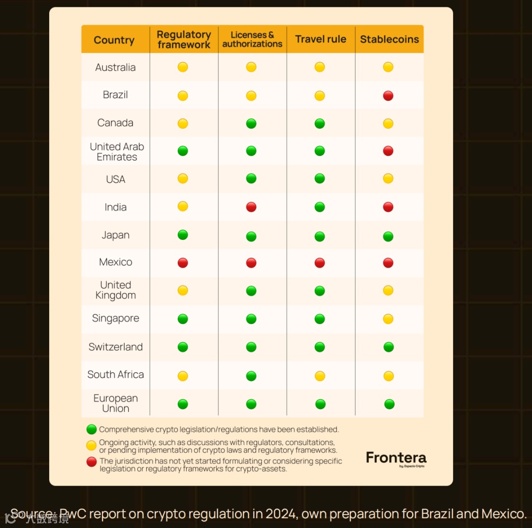 当然,监管灰犀牛仍在路上。法规一日不定,合规成本就一日悬在头顶。但多数团队已学会“边航行边修船”:在条文更新前留好接口,在政策落地时迅速切换。最终谁能跑出,取决于各国监管框架的清晰度。巴西就是“清晰”带来的红利样本。明确的上位法、可预期的合规清单,让全国集聚了区域近半数项目,资本与人才持续南下。相反,在法规多变或缺位的墨西哥,团队把大量精力花在“猜政策”上,创新节奏被迫放缓,生态天花板提前被焊死。