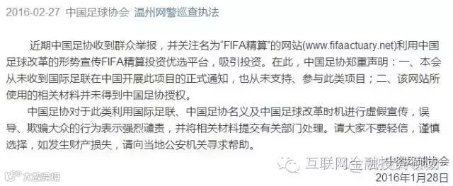 在大家都在吐槽国足时,伟大的拯救英雄来了就是FIFA精算打着改革足协,只要你投资多少,不仅可以改革足协成为世界最NB还可以获得高额回报,结果足协是这样发布的;