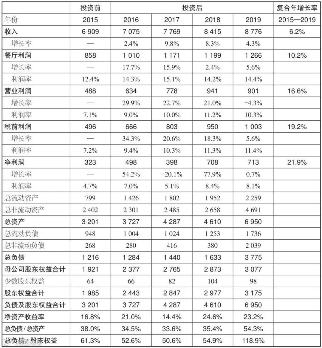 在投资后的三年内,公司的收入从2016年的70.8亿美元增至2019年的87.8亿美元,成长为中国最大的连锁餐饮平台之一。公司归母净利润从2016年的5.0亿美元增长到2019年的7.1亿美元,年化增长率为12.7%。截至2019年12月31日,百胜中国每股价格为48.01美元,市值为180.9亿美元。