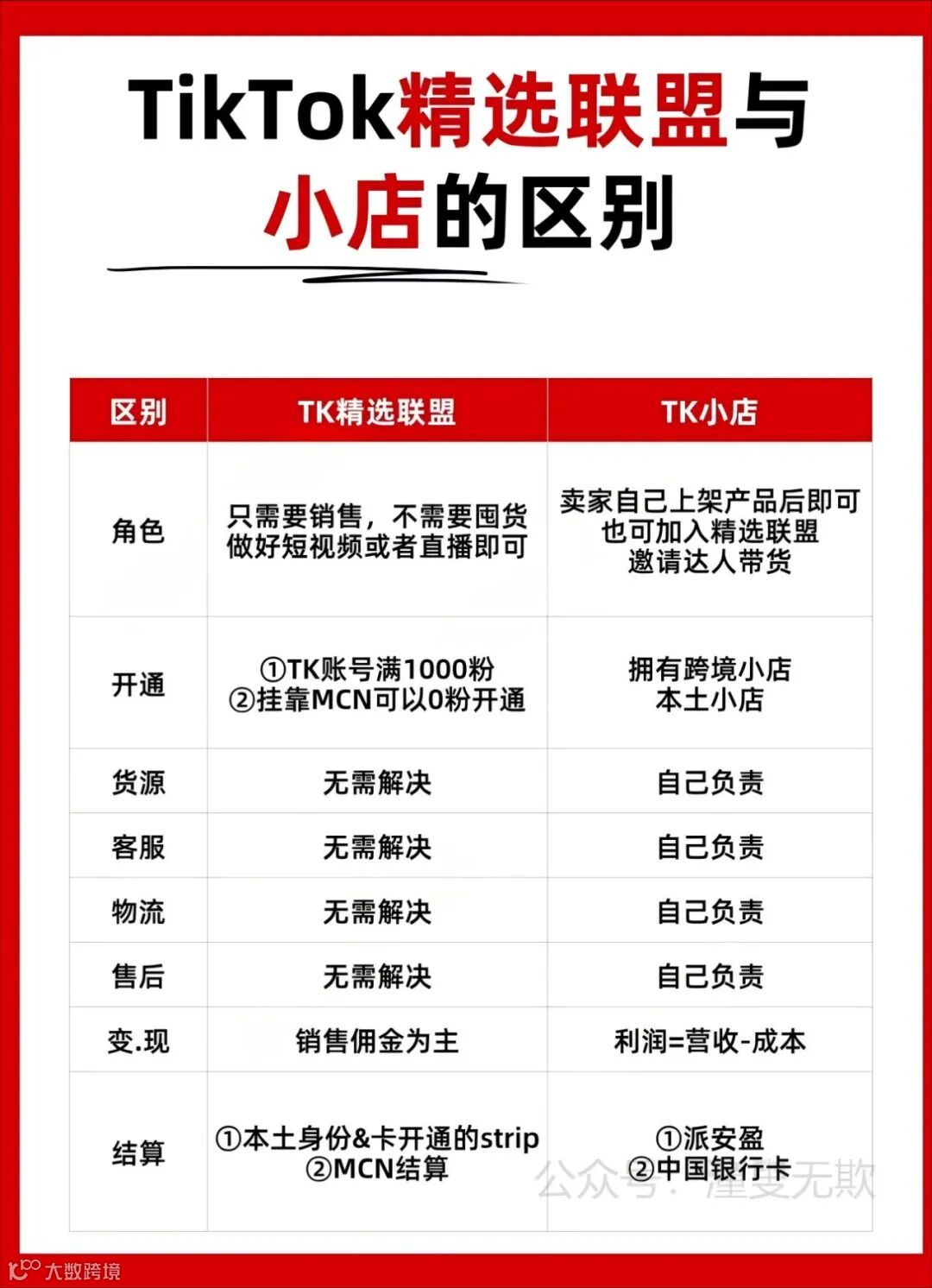 二、关键差异:TikTok 橱窗(达人带货)与小店对比
