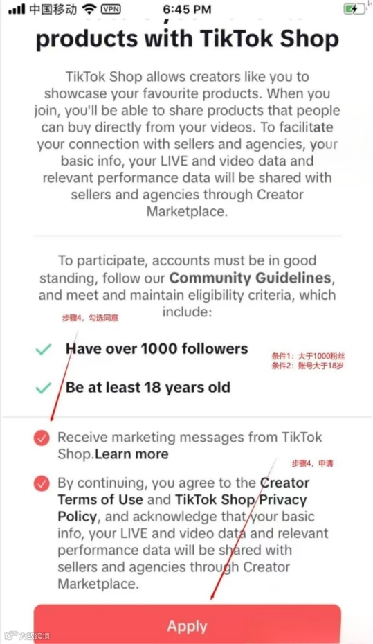 :确认粉丝量达标(对应地区门槛)、账号无违规记录,无需额外准备身份验证文件(与其他电商平台不同,TikTok 橱窗申请暂不要求提交身份证等材料)。