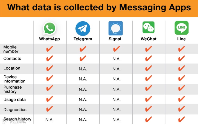 (全球主流私域社媒平台对用户数据的采集类别,