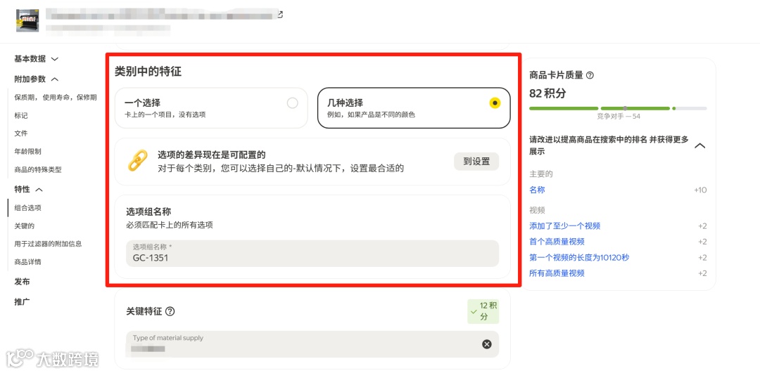 检查变体是否具有共同特征:类目、组名称、品牌。不同类目的商品不可合并;