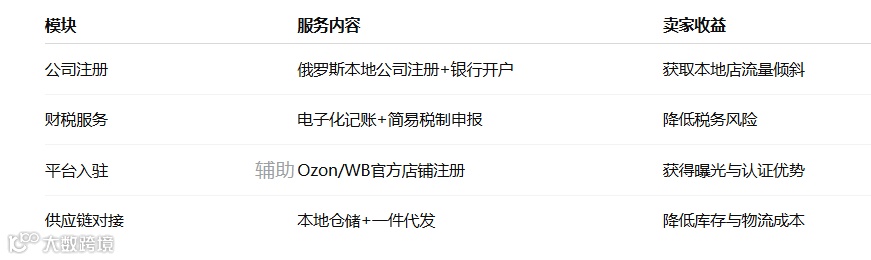 开店与合规运营:注册Ozon/WB店铺→系统同步至财税后台→月度自动申报→销售回款合规入账。