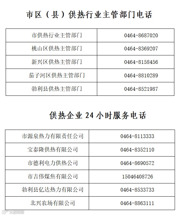 为进一步做好2025-2026年供热期供热保障工作,切实提升供热服务质量,畅通诉求渠道,第一时间解决热用户的供热诉求,现将我市区(县)供热行业主管部门电话及供热企业24小时服务电话公示如下: