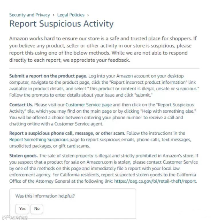 亚马逊的详情页面最近新出了一个举报功能!