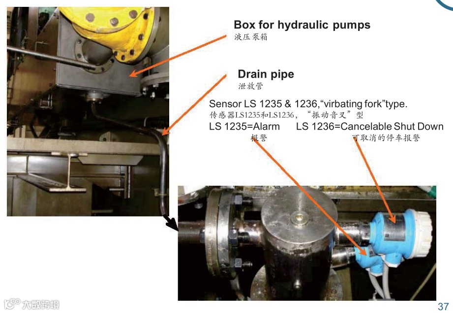 3.如果是自带泵和电动泵处,漏油,报警点在飞轮端右下方花铁板下,一个是泄漏报警,一个是大量泄漏触发主机停车。紧急情况下,只要油压没有低到主机停车保护和启动阻塞保护动作(MOP面板180bar)优先保证紧急用车。闭锁报警。 滑油压力低的原因一般有四种: